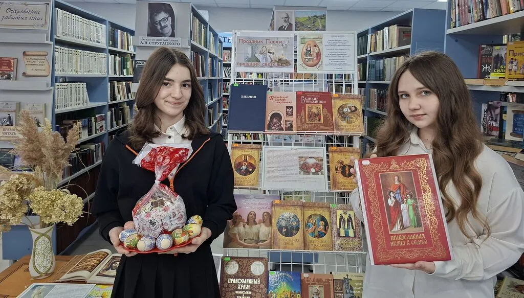 На абонементе библиотеки оформлена выставка-инсталяция «Праздник Пасхи – праздник света». Наряду с книгами об истории и символах празднования Пасхи, о народных традициях и обычаях на выставке представлены пасхальные атрибуты – крашеные яйца, веточки вербы, кулич, поделки и сувениры, сделанные читателями библиотеки.