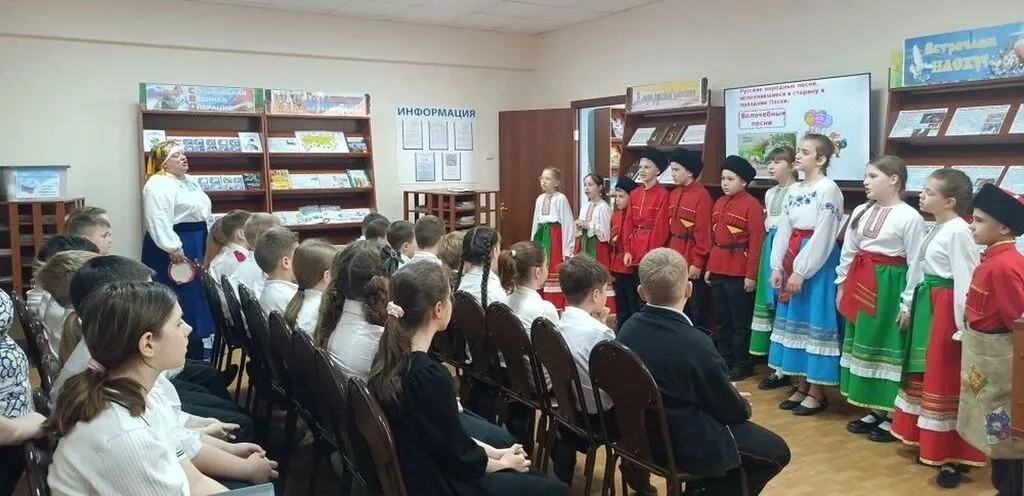 Юные артисты ансамбля показали «Волочебный» обряд; исполнили пасхальные песни – заклички. Мероприятие было дополнено выставкой литературы «Светлая Пасха Христова», на которой были представлены материалы об истории, традициях и обычаях православных праздников.