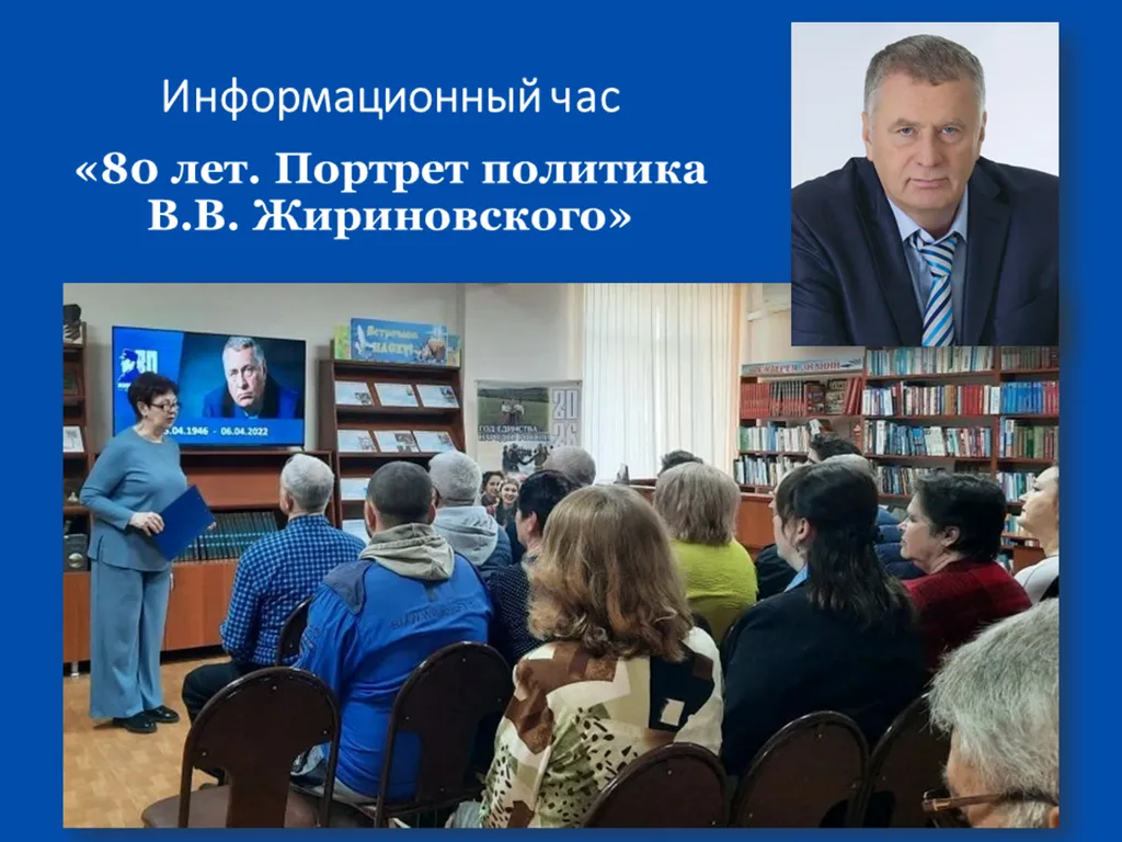 В преддверии этой даты, в Выселковской сельской библиотеке, филиале №2 для участников хора «Раздолье» СДК «им. В.С. Стрижака» проведен информационный час «80 лет. Портрет политика В. В. Жириновского».