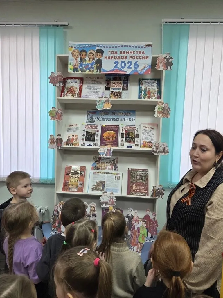 Особое внимание было уделено красочно оформленным книжным выставкам и инсталляции, посвященным Году народного единства.